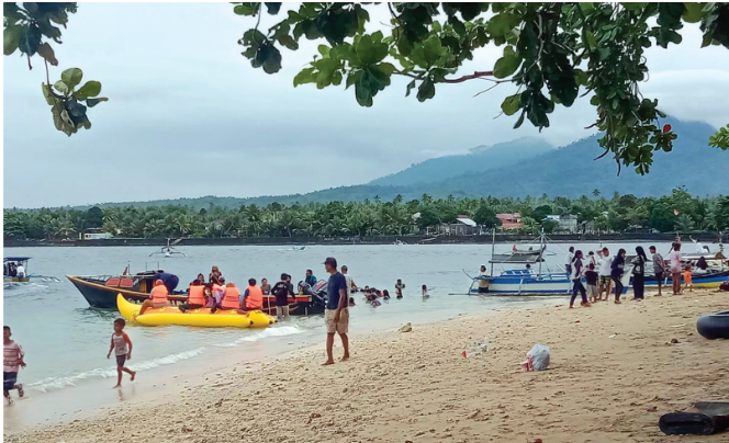 Saat matahari mulai tenggelam, area ini berubah menjadi ruang santai komunitas; pengunjung duduk menikmati hidangan lokal, berbagi tawa ditemani musik ringan dan hiburan sederhana. Kehangatan malam dengan udara laut yang sejuk membuat pengalaman di Pulau Kahino tak lagi hanya indah di siang hari, tetapi juga menawan saat gelap menyelimuti laut.